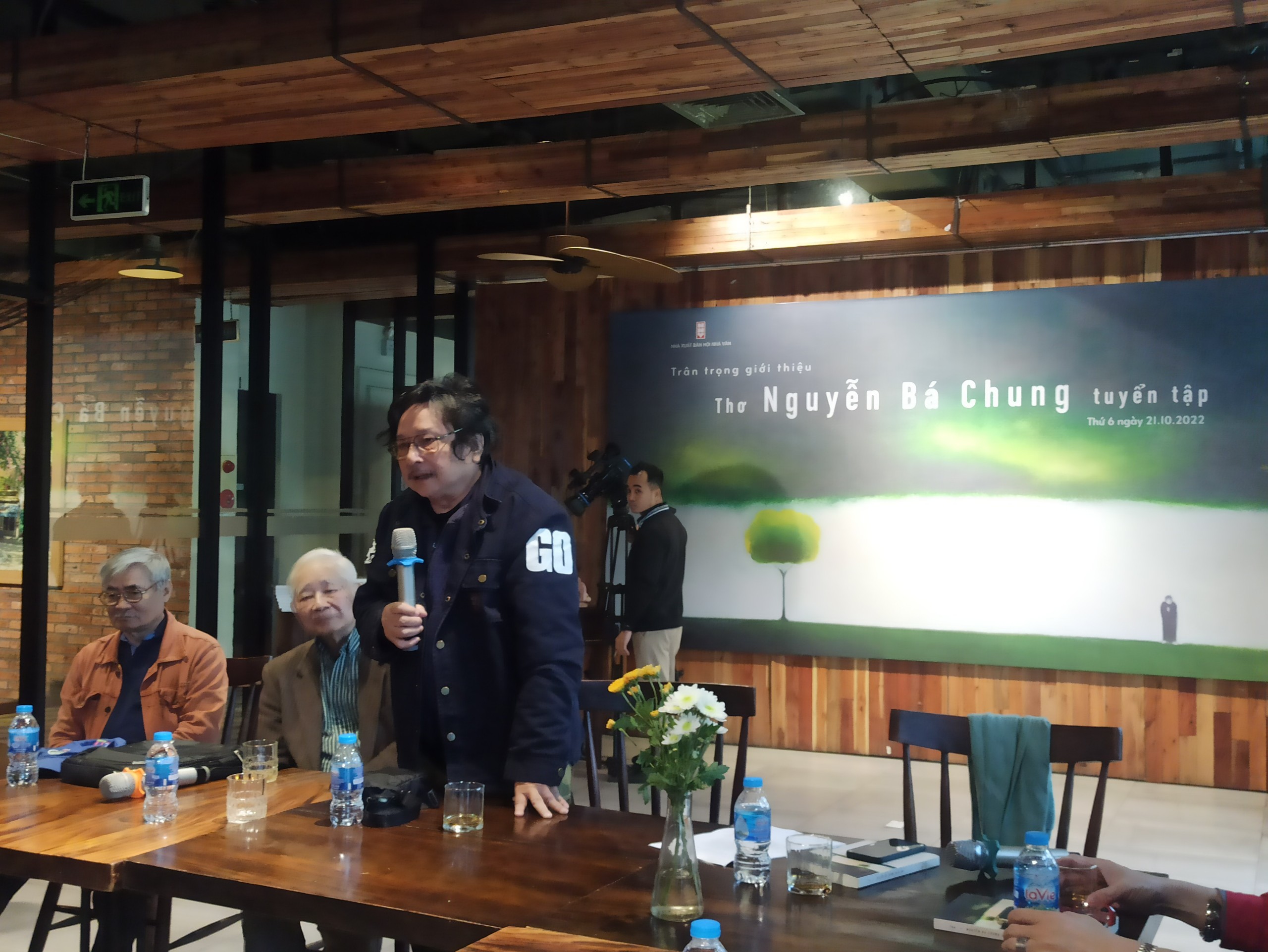 Nhà thơ Trần Đăng Khoa (đứng)